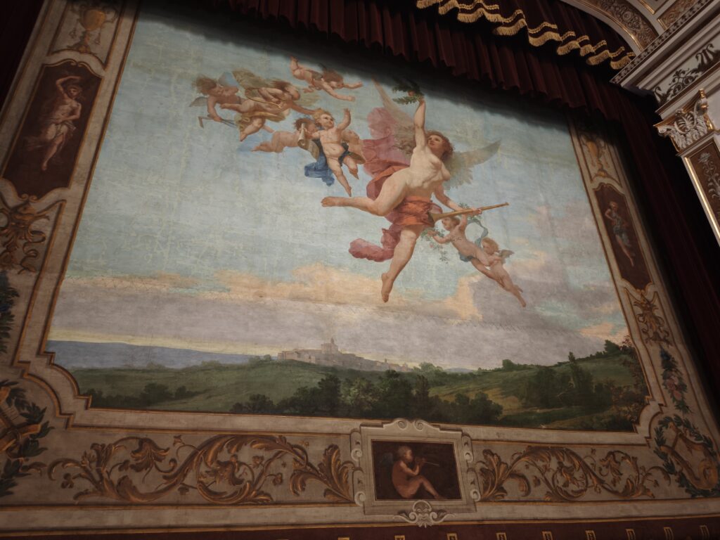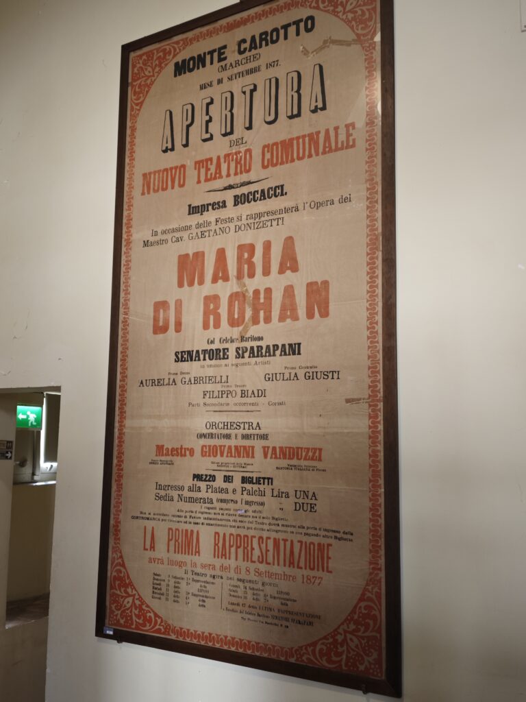 Das Theater von Montecarotto - eröffnet im September 1877 ! (im Winter finden hier Opern- und Theateraufführungen statt) Dabei ist vor allem der sehr alte, historisch wertvolle Vorhang zu erwähnen.